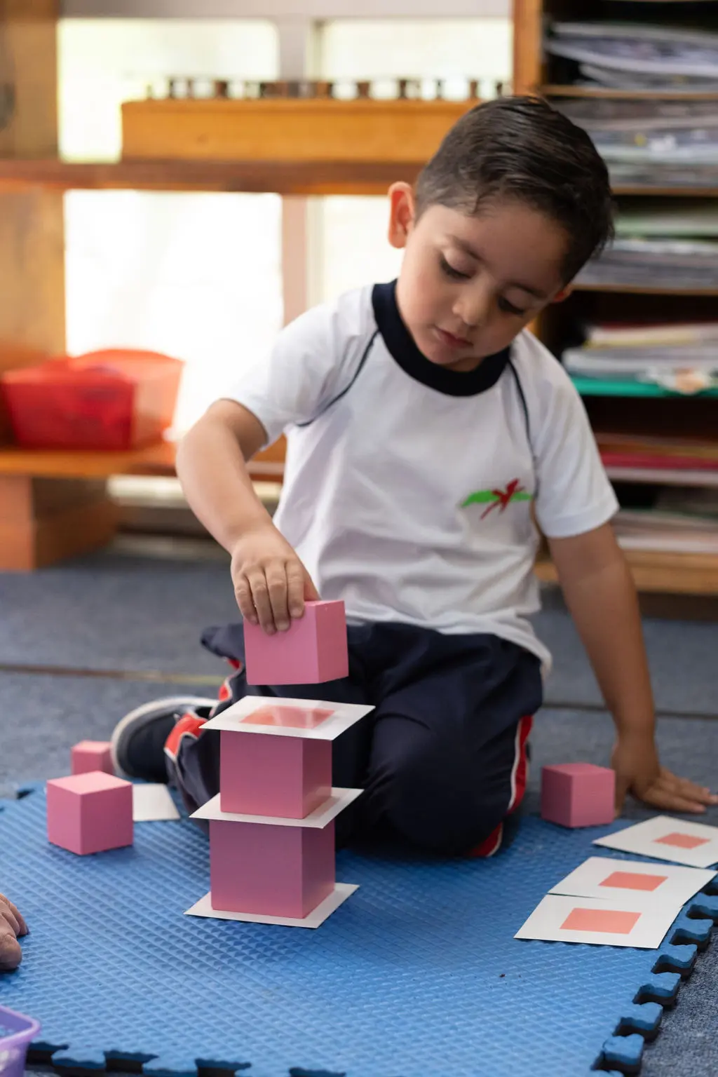 El trabajo personal es el momento de la jornada donde cada niño y niña se concentra, como su nombre lo dice, en sí mismo, en su persona, mientras trabaja. Los niños conocen la programación porque los materiales están montados en el aula con un orden progresivo y lógico. Ellos deciden qué material trabajar cuando hacen su plan de trabajo del día. Todos los materiales son atractivos según la edad y tienen un objetivo pedagógico y didáctico claro. Las actividades que realizan durante el trabajo personal construyen la inteligencia.